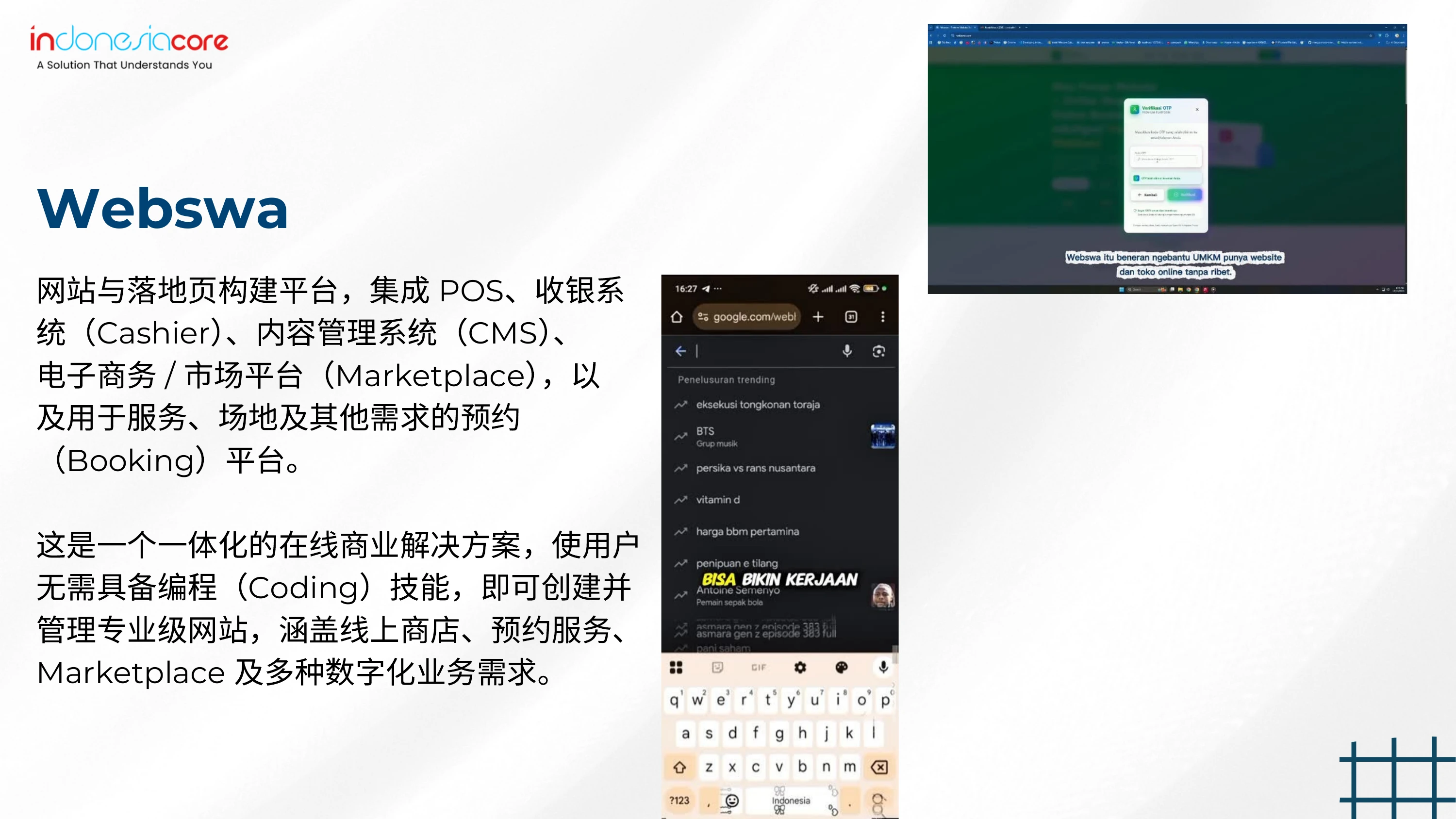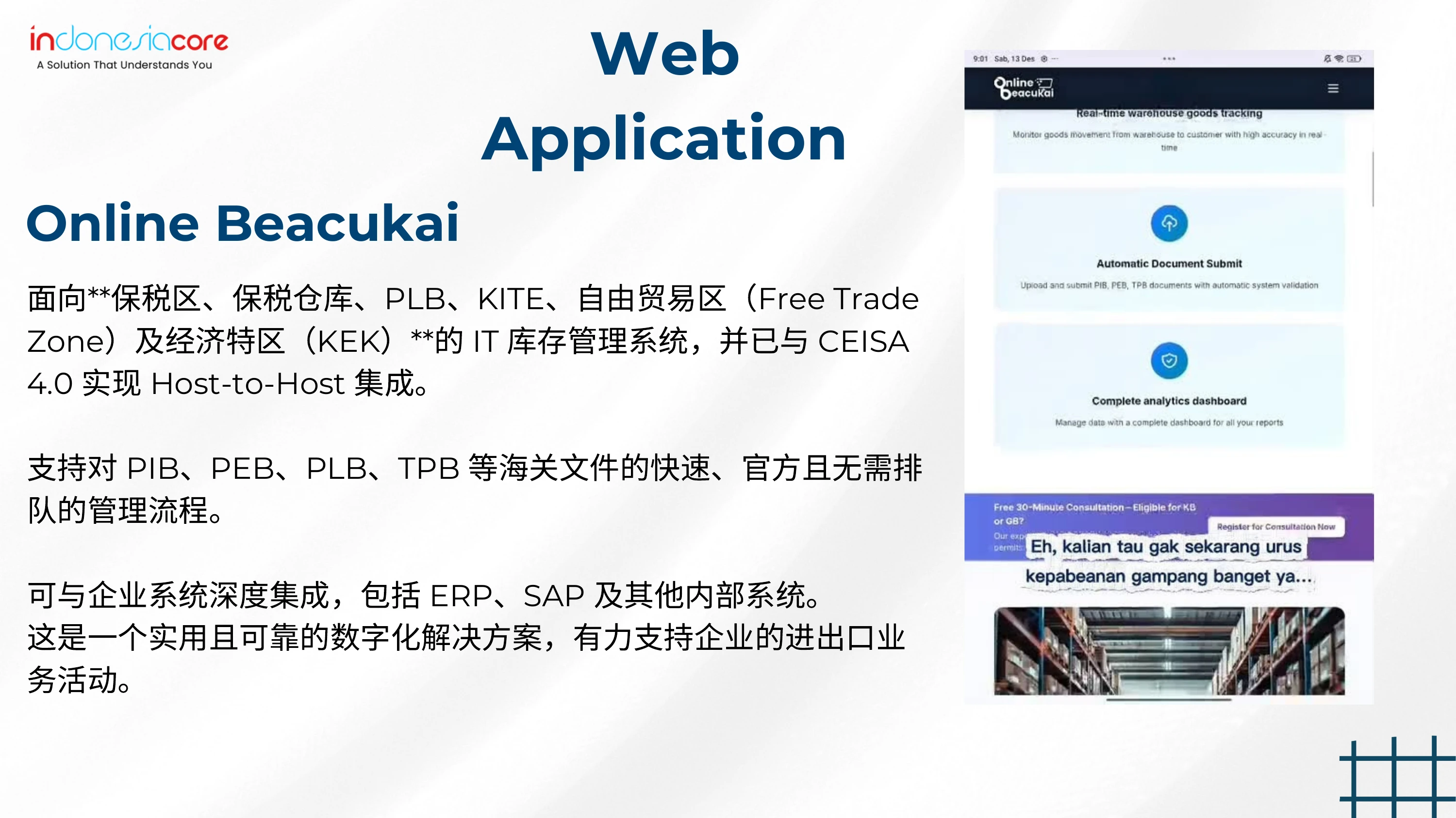 你好,商务小伙伴们! 你知道IndonesiaCore真的是很酷吗? 他们有各种适合你业务的移动应用程序。从市场、ERP到智能收银机,他们应有尽有!不仅如此,对于拥有工厂或保税区的人来说,他们的平台也非常有帮助。请在这里了解更多信息!